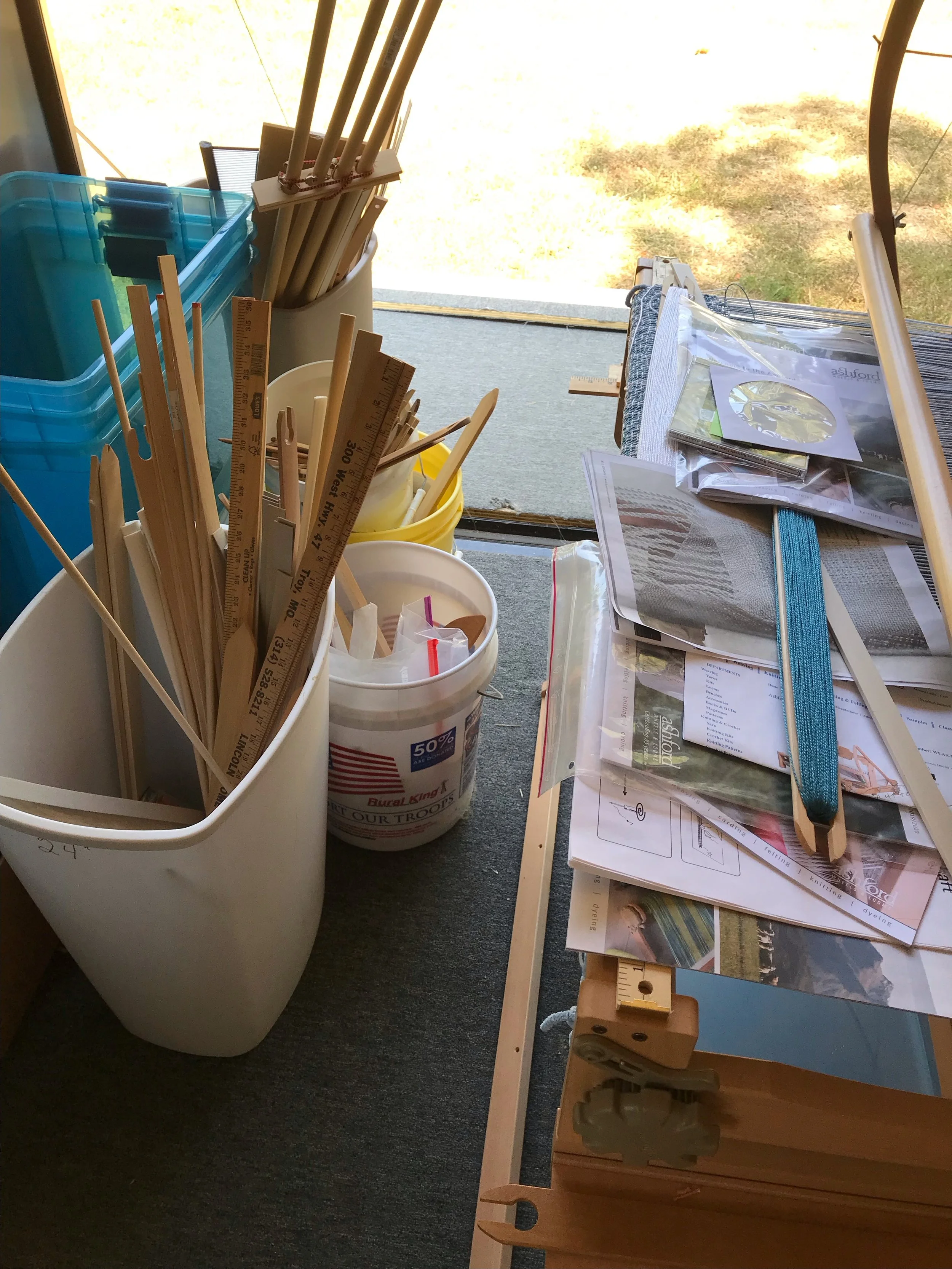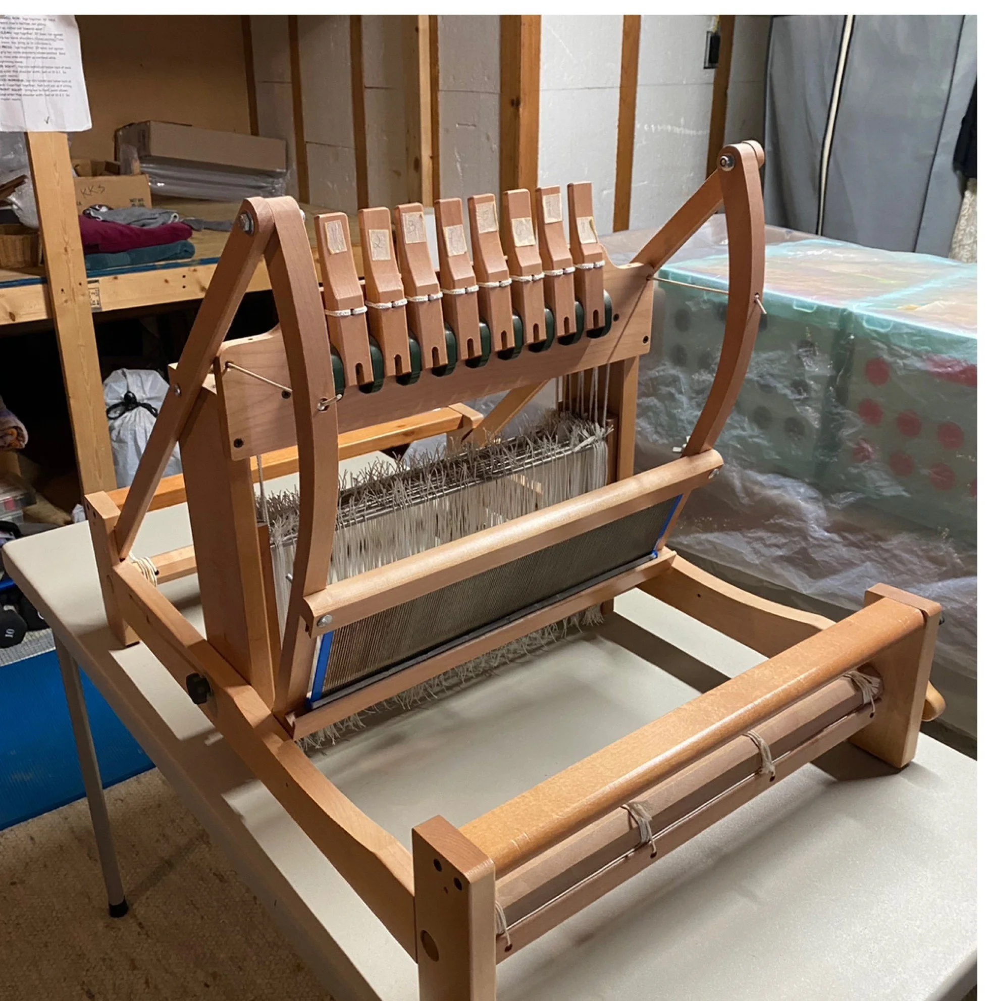 Other Equipment Included: Counterbalance setup: bench, Texsvolv tie up kit with many heddles, reed 12 dpi, lease sticks, warp beam sticks